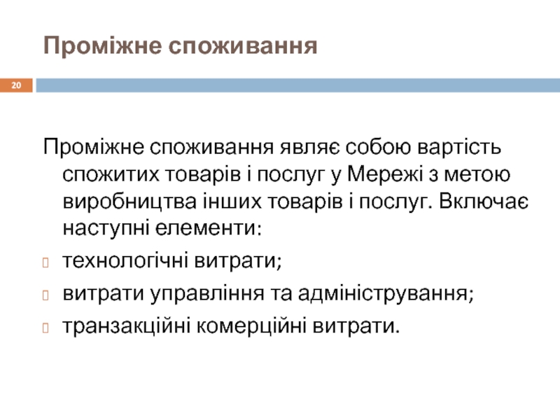 Проміжне споживання являє собою вартість спожитих товарів і послуг у