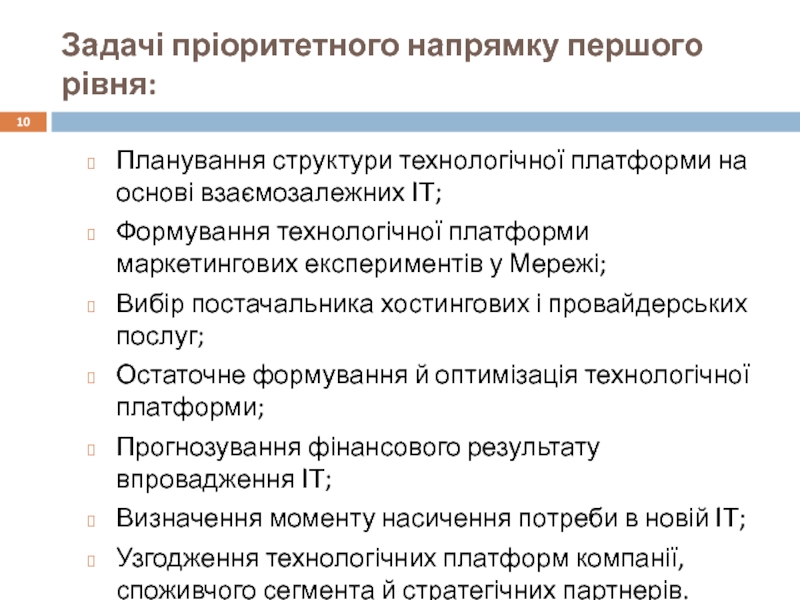 Слайд 10Задачі пріоритетного напрямку першого рівня: