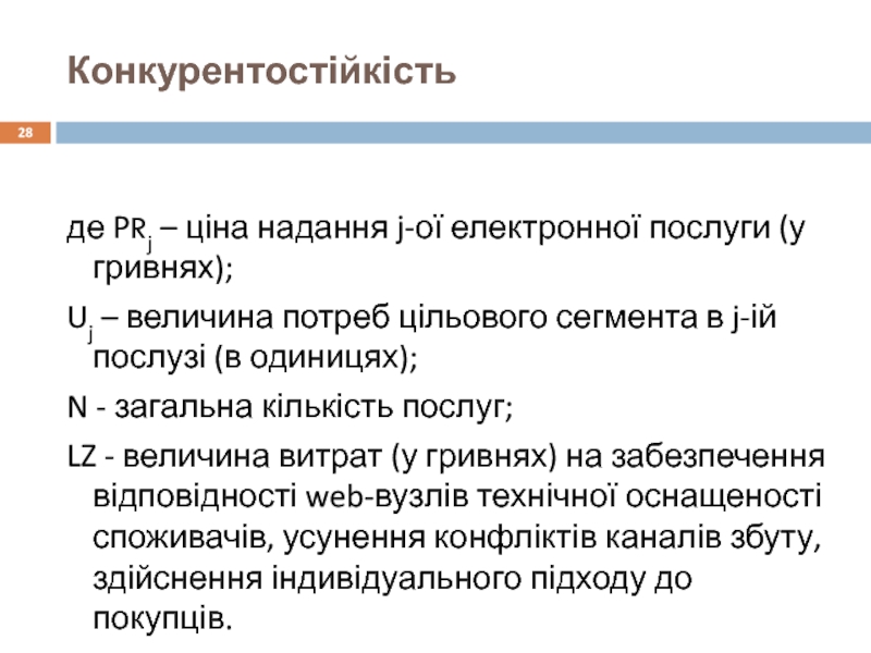 де PRj – ціна надання j-ої електронної послуги (у гривнях);