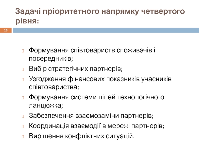 Слайд 13Задачі пріоритетного напрямку четвертого рівня: