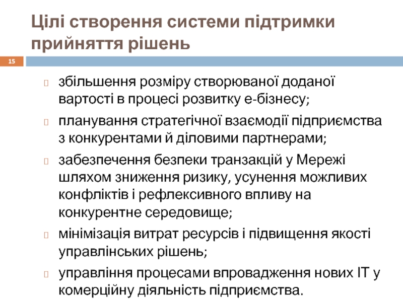 Слайд 15Цілі створення системи підтримки прийняття рішень