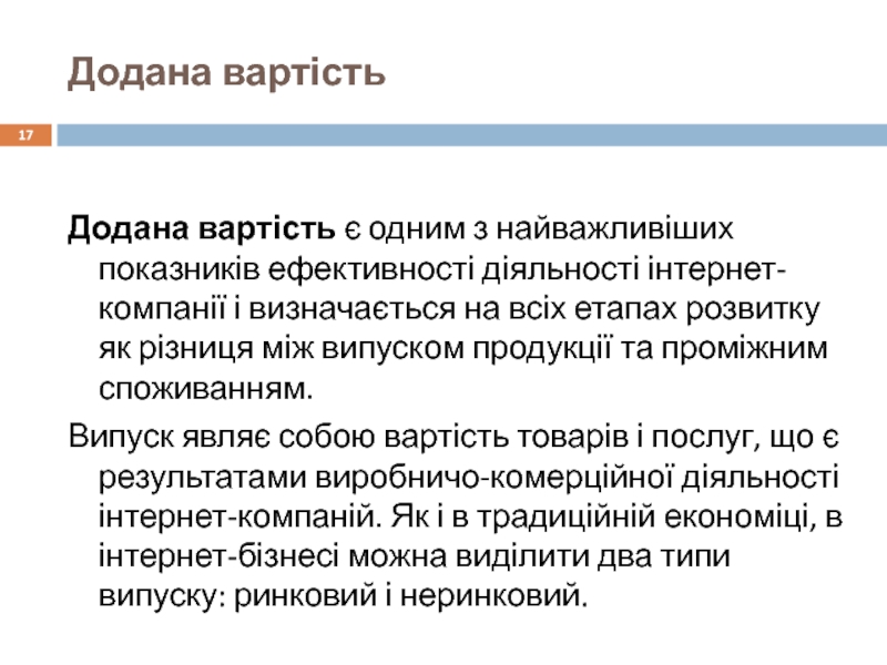 інтернет-компанії і визначається на всіх етапах розвитку як різниця між випуском продукції та проміжним споживанням.