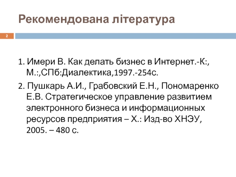 1. Имери В. Как делать бизнес в Интернет.-К:,М.:,СПб:Диалектика,1997.-254с.