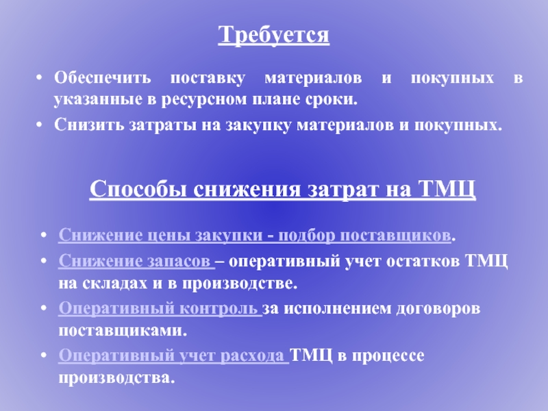 Снижение запасов – оперативный учет остатков ТМЦ на складах и в производстве.