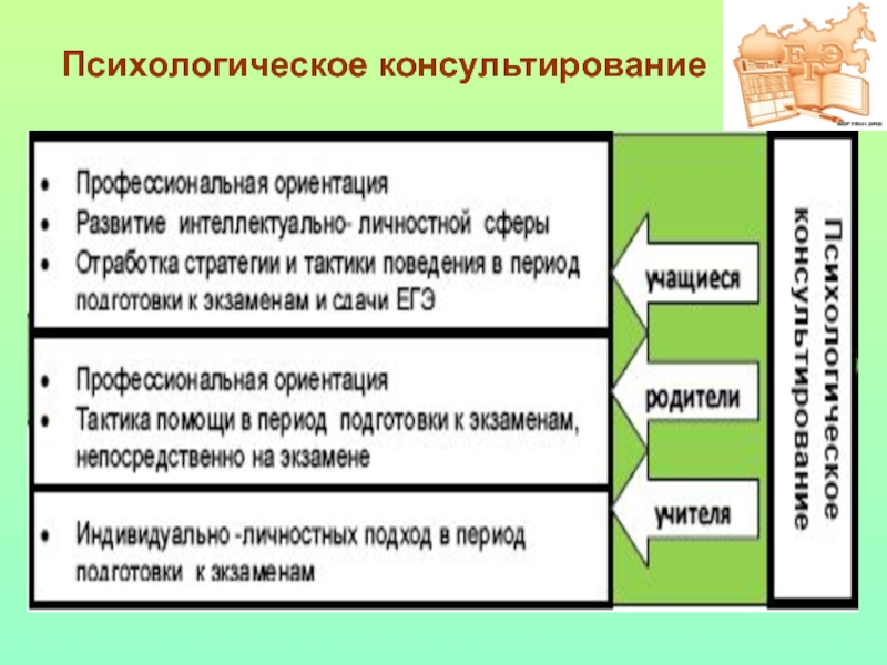 Слайд 12Психолого –педагогическое сопровождение участников образовательного процесса при подготовке к ЕГЭ