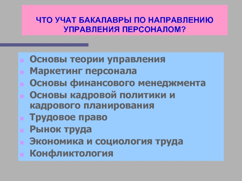 Слайд 3ЧТО УЧАТ БАКАЛАВРЫ ПО НАПРАВЛЕНИЮ УПРАВЛЕНИЯ ПЕРСОНАЛОМ?