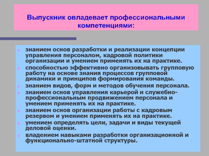 знанием основ управления карьерой и служебно-профессиональным продвижением персонала и умением применять их на практике.