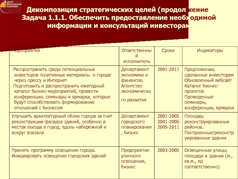 Слайд 7Декомпозиция стратегических целей (продолжение)
