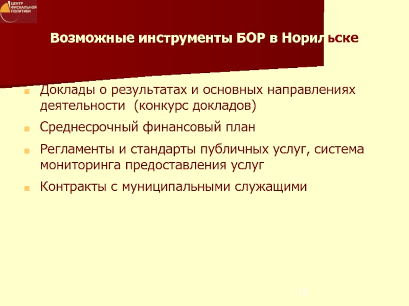 Красноярский край победил в конкурсе Министерства финансов Российской Федерации по распределению субсидий из Фонда реформирования региональных и муниципальных финансов (ФРРМФ), имеет обязательства перед Минфином по внедрению бюджетирования, ориентированного на результат (БОР).