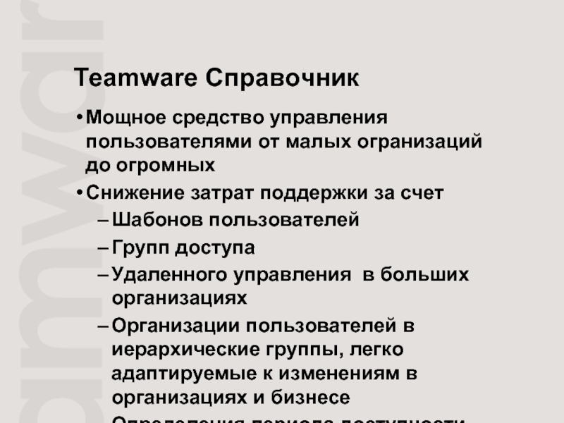 Организации пользователей в иерархические группы, легко адаптируемые к изменениям в организациях и бизнесе