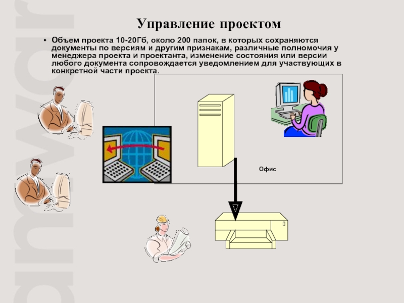по версиям и другим признакам, различные полномочия у менеджера проекта и проектанта, изменение состояния или версии любого документа сопровождается уведомлением для участвующих в конкретной части проекта.