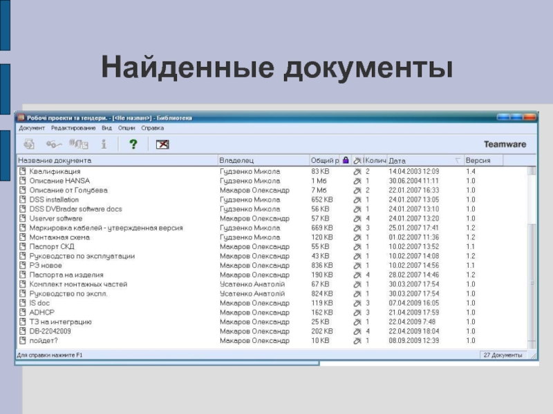 Через Teamware WebService, папки и документы и их приложения доступны в стандартном web браузере