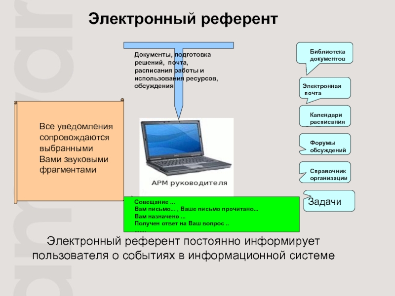 Электронный референт постоянно информирует пользователя о событиях в информационной системе