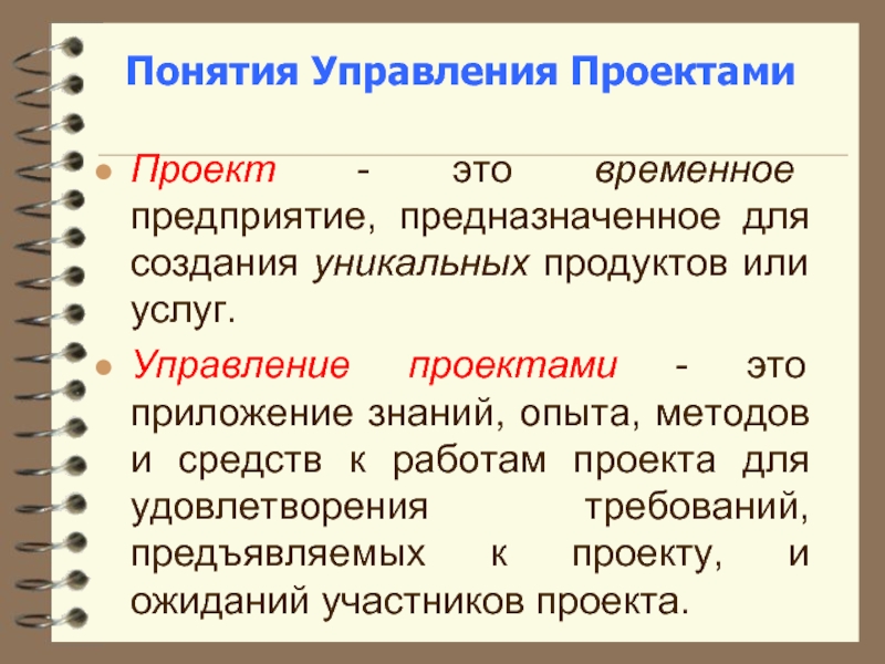 Проект - это временное предприятие, предназначенное для создания уникальных