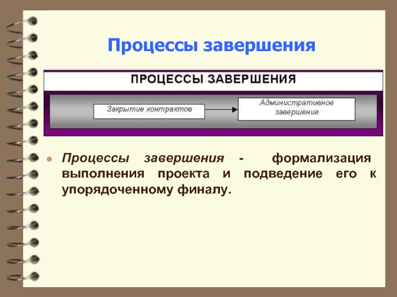 процессы завершения - формализация выполнения проекта и подведение его к упорядоченному финалу.