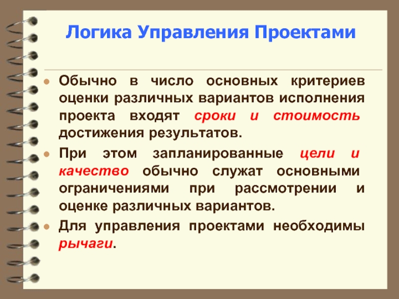 При этом запланированные цели и качество обычно служат основными ограничениями при рассмотрении и оценке различных вариантов.