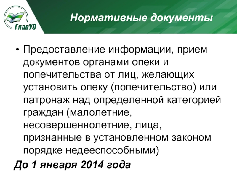 Слайд 24Предоставление информации, прием документов органами опеки и попечительства от лиц, желающих
