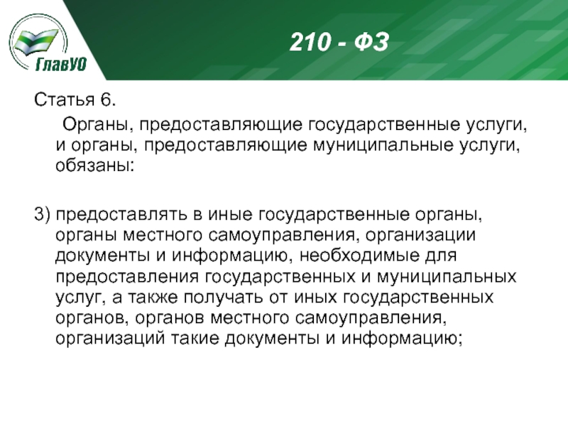 3) предоставлять в иные государственные органы, органы местного самоуправления, организации документы и информацию, необходимые для предоставления государственных и муниципальных услуг, а также получать от иных государственных органов, органов местного самоуправления, организаций такие документы и информацию;