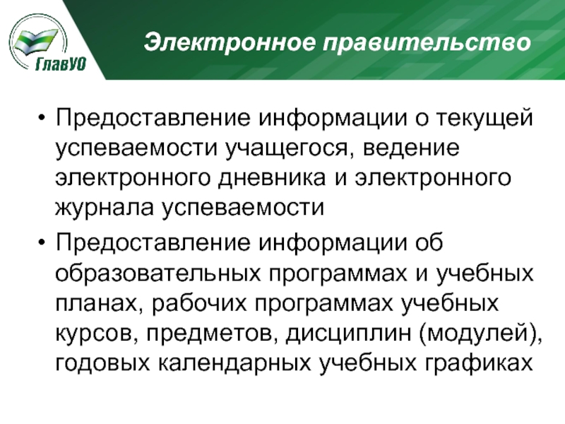 Слайд 27Предоставление информации о текущей успеваемости учащегося, ведение электронного дневника и электронного