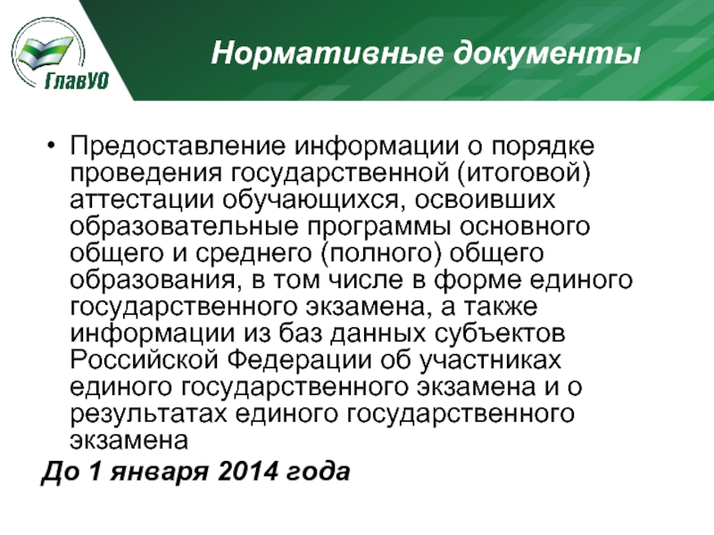 Слайд 23Предоставление информации о порядке проведения государственной (итоговой) аттестации обучающихся, освоивших образовательные