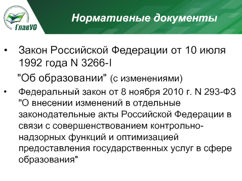 Слайд 6Закон Российской Федерации от 10 июля 1992 года N 3266-I