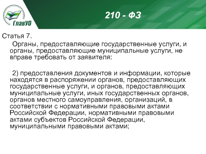 2) предоставления документов и информации, которые находятся в распоряжении органов, предоставляющих государственные услуги, и органов, предоставляющих муниципальные услуги, иных государственных органов, органов местного самоуправления, организаций, в соответствии с нормативными правовыми актами Российской Федерации, нормативными правовыми актами субъектов Российской Федерации, муниципальными правовыми актами;
