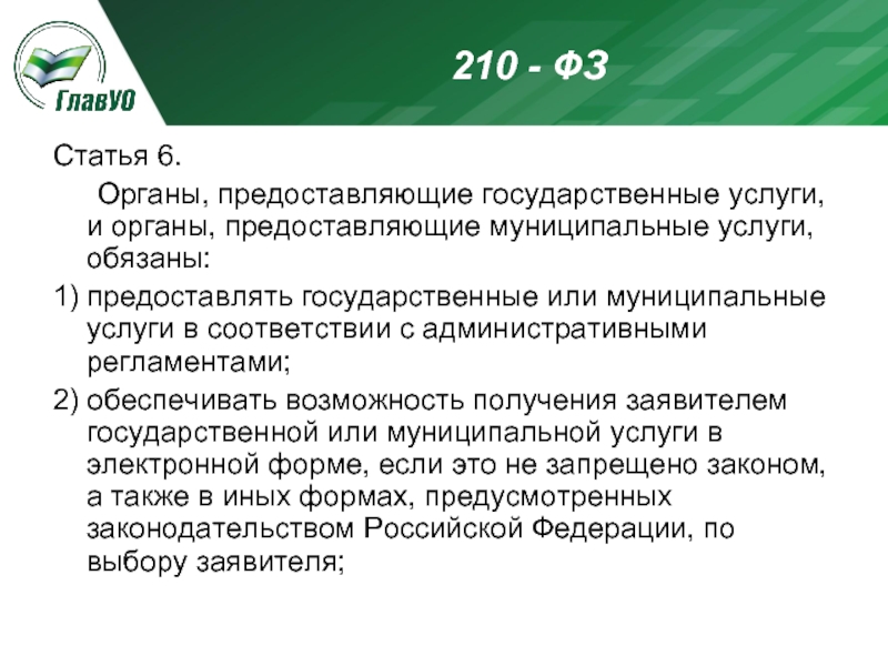 2) обеспечивать возможность получения заявителем государственной или муниципальной услуги в электронной форме, если это не запрещено законом, а также в иных формах, предусмотренных законодательством Российской Федерации, по выбору заявителя;