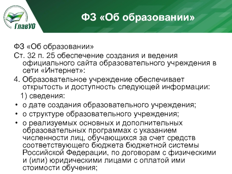 Ст. 32 п. 25 обеспечение создания и ведения официального