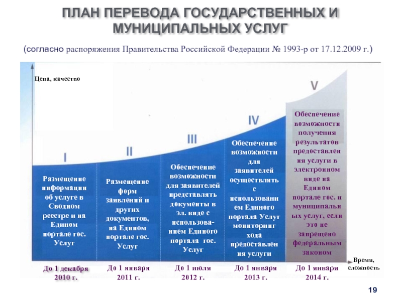 Слайд 19ПЛАН ПЕРЕВОДА ГОСУДАРСТВЕННЫХ И МУНИЦИПАЛЬНЫХ УСЛУГ