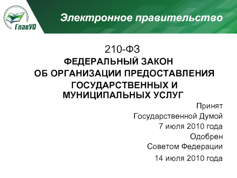 Слайд 8Федеральный закон от 10 января 2002 г. № 1-ФЗ