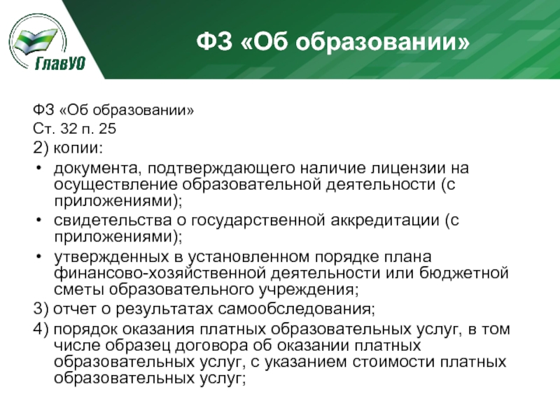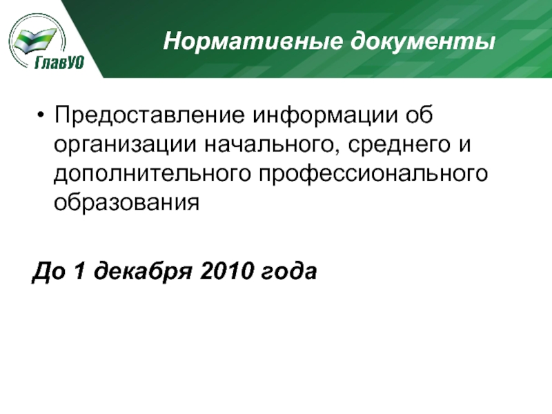 Слайд 22Предоставление информации об организации начального, среднего и дополнительного профессионального образования