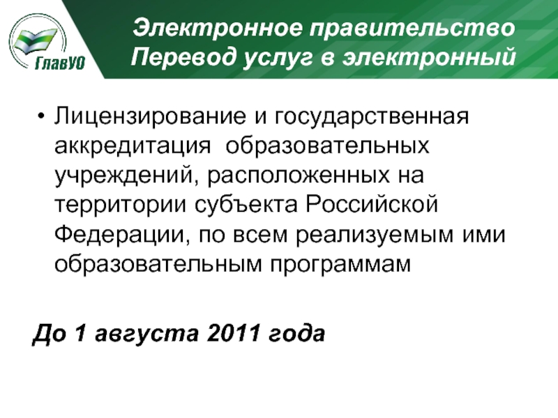 Слайд 20Лицензирование и государственная аккредитация образовательных учреждений, расположенных на территории субъекта Российской