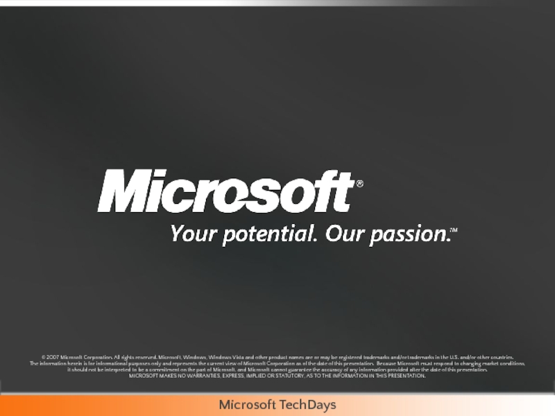 MICROSOFT MAKES NO WARRANTIES, EXPRESS, IMPLIED OR STATUTORY, AS TO THE INFORMATION IN THIS PRESENTATION.