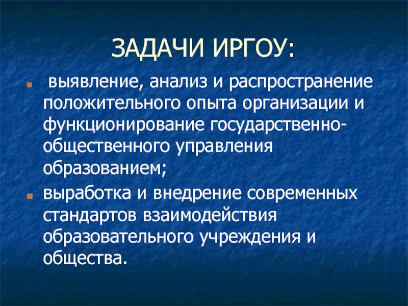 Слайд 3ЗАДАЧИ ИРГОУ: