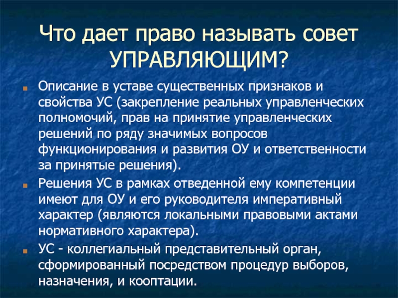 Слайд 5Что дает право называть совет УПРАВЛЯЮЩИМ?