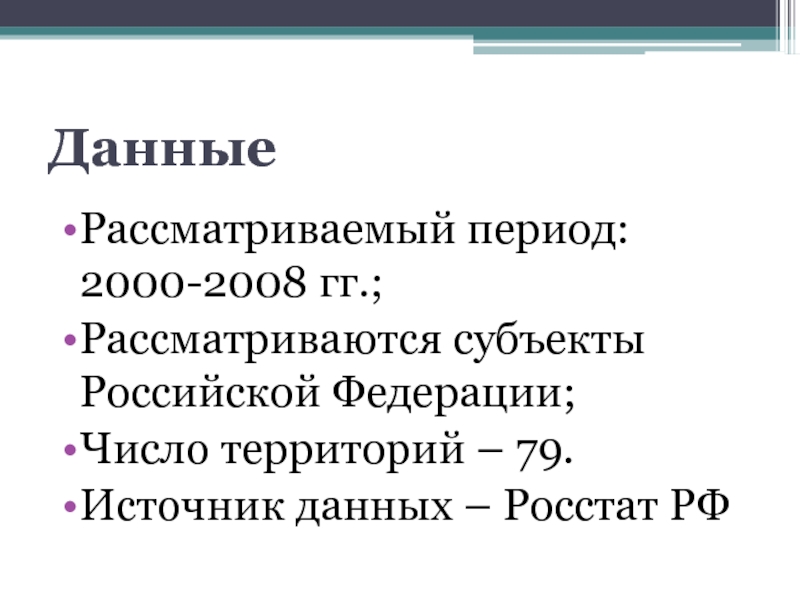 Рассматриваемый период: 2000-2008 гг.;