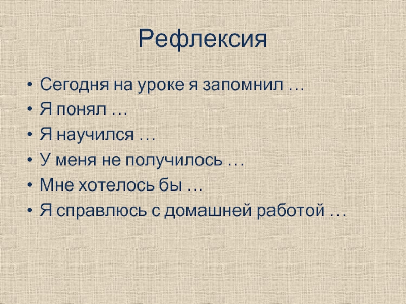 Сегодня на уроке я запомнил …
