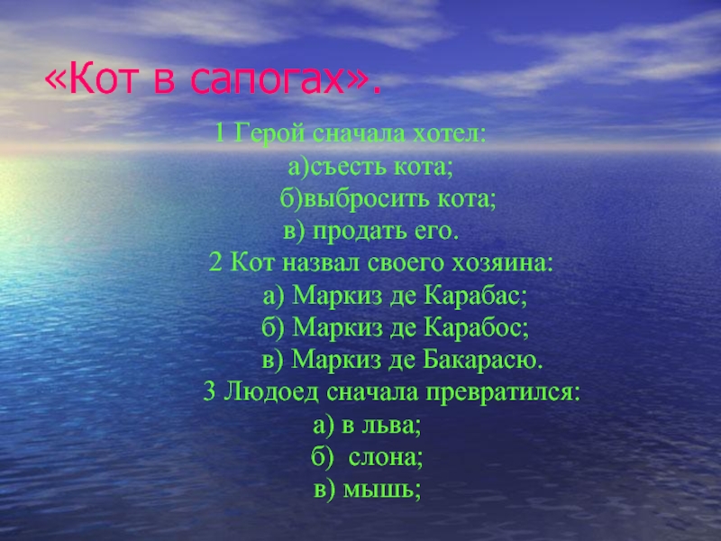 Слайд 15«Кот в сапогах».