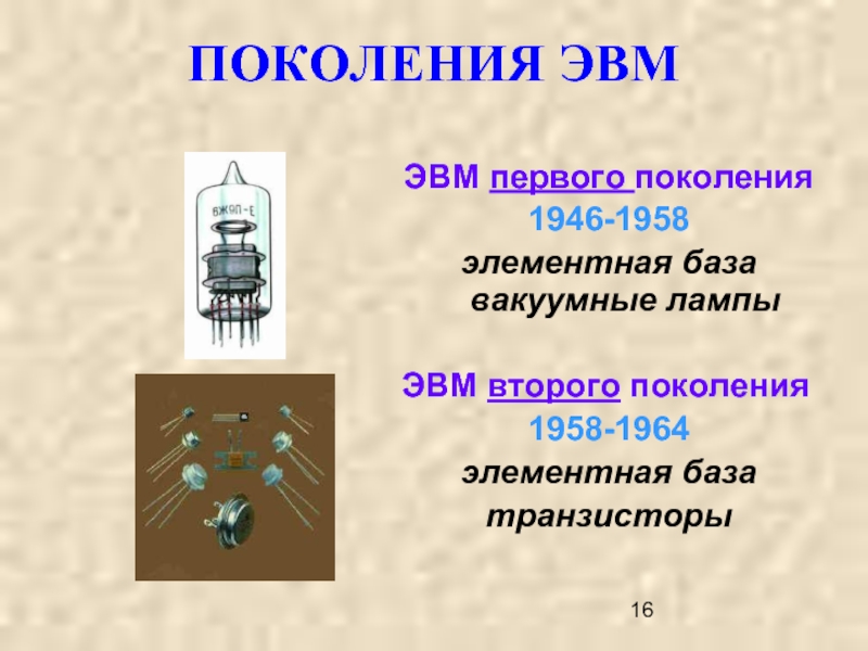 Слайд 16ПОКОЛЕНИЯ ЭВМ