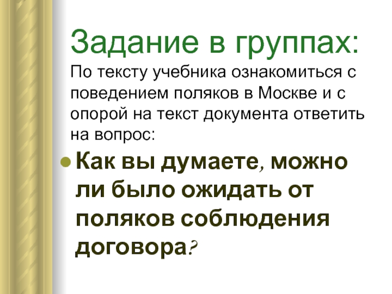 Как вы думаете, можно ли было ожидать от поляков соблюдения договора?