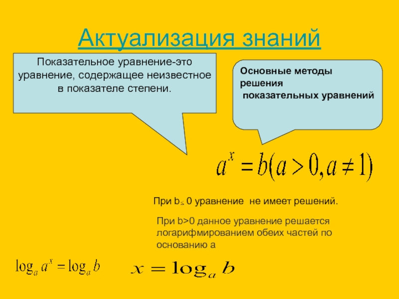 При b>0 данное уравнение решается логарифмированием обеих частей по основанию a