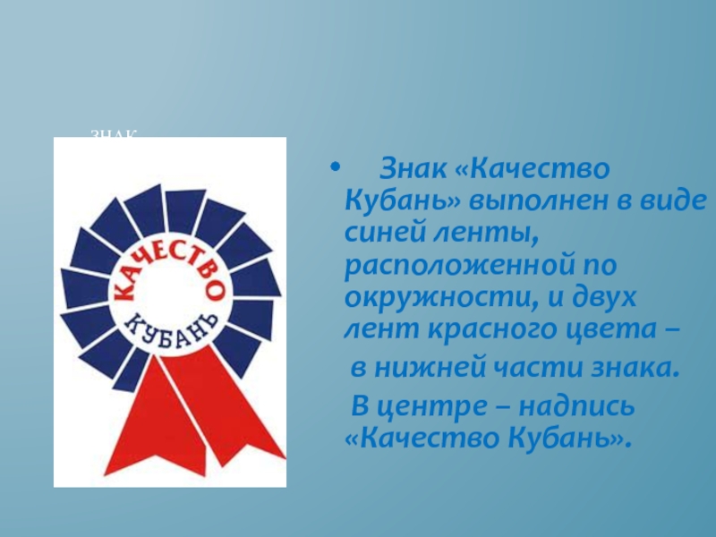 ЗНАК «КАЧЕСТВО КУБАНЬ»