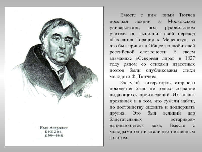 Слайд 9Вместе с ним юный Тютчев посещал лекции в Московском университете; под
