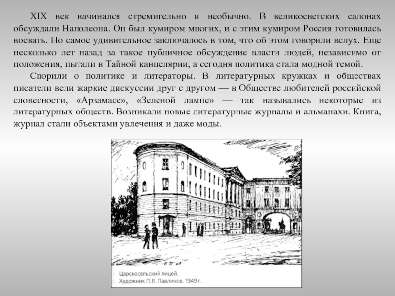 Слайд 2XIX век начинался стремительно и необычно. В великосветских салонах обсуждали Наполеона.