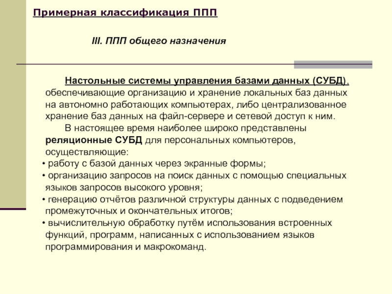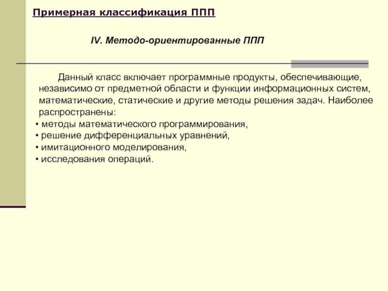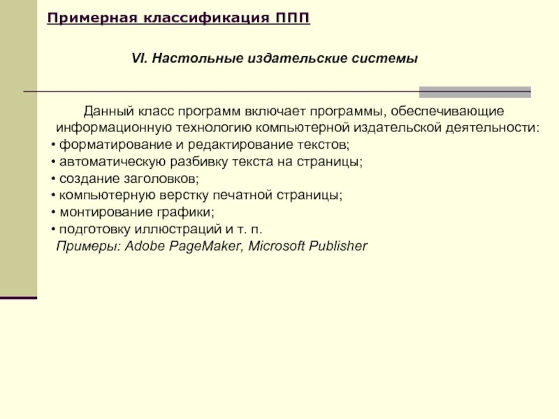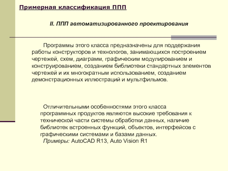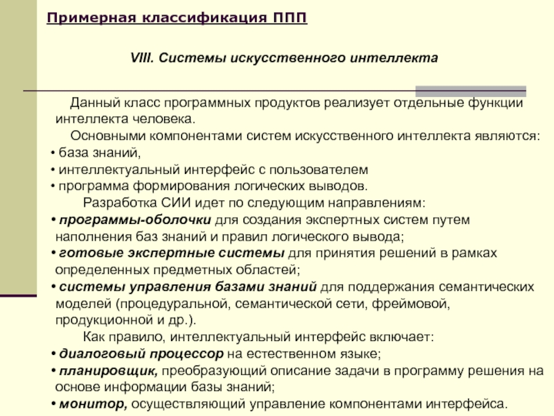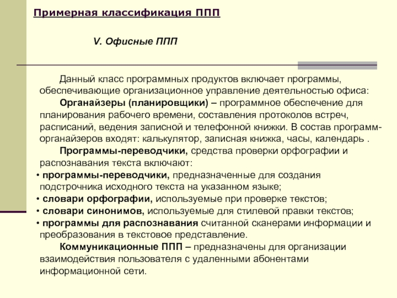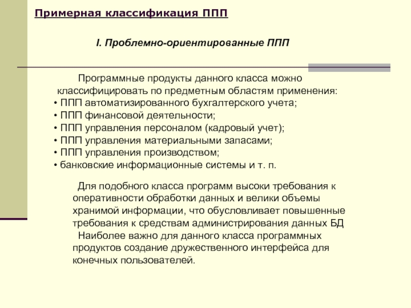 Программные продукты данного класса можно классифицировать по предметным областям применения: