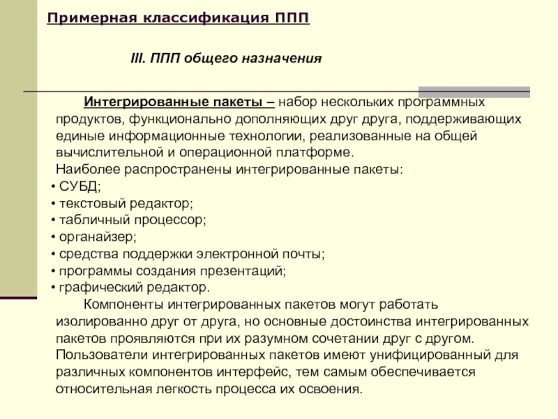 1. Общего назначения (текстовые редакторы, СУБД, графические системы, интегрированные системы);