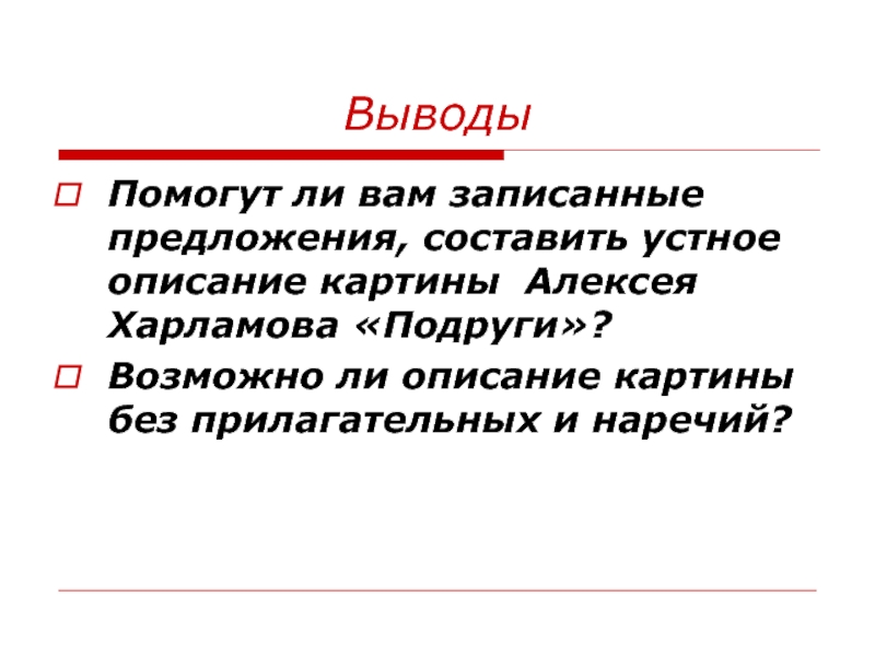 Помогут ли вам записанные предложения, составить устное описание картины Алексея Харламова