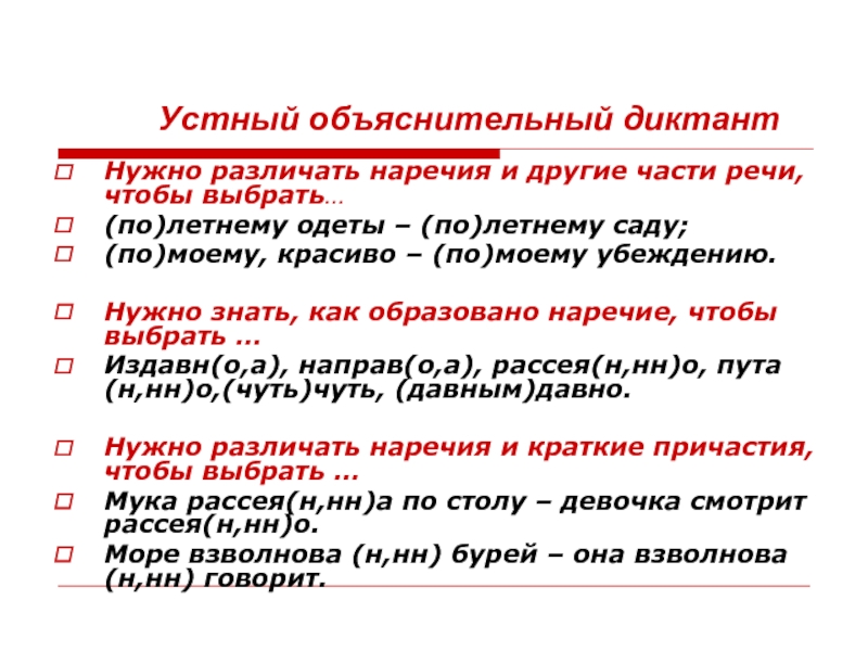 Нужно знать, как образовано наречие, чтобы выбрать …