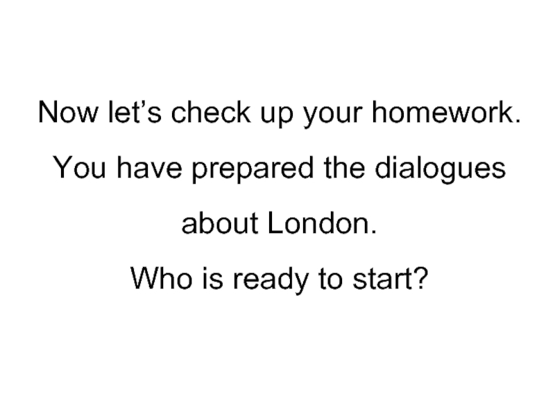 Слайд 12Now let’s check up your homework. You have prepared the dialogues