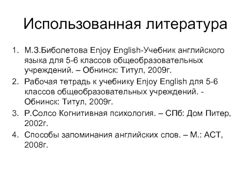 Способы запоминания английских слов. – М.: АСТ, 2008г.